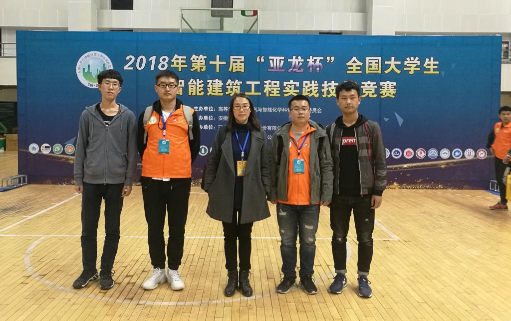 2018年11月3日,第十届“亚龙杯”全国大学生智能建筑工程实践技能竞赛在安徽建筑大学顺利举行。由电子科学与控制工程学院李立新、邱忠超老师指导的2015级电气工程及其自动化专业学生董宝鑫、李世强同学参加本次竞赛并荣获团体三等奖。