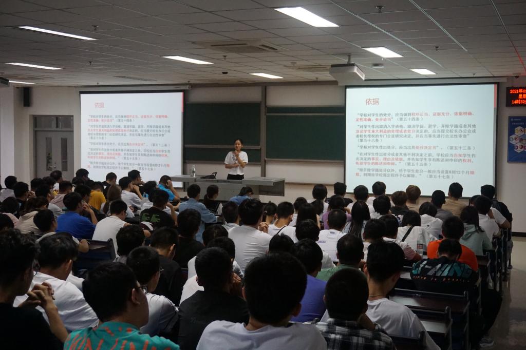 为加强新生爱国主义教育,增强民族认同感,推动国家安全和校园安全宣传工作,电子科学与控制工程学院于9月18日14:30在天仪楼111、210开展了爱国主义及总体国家安全观教育讲座。本次讲座由2021级辅导员朱桃花、王立老师主讲,2021级全体新生参加了本次讲座。