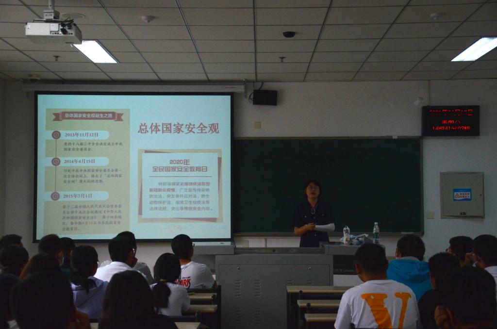两位辅导员首先结合实际情况从总体国家安全观、国家安全形势、中国特色国家安全道路三个方面对国家安全体系进行了详细介绍,对新形势下国家安全风险进行了举例,并带领同学们观看了总体国家安全观视角下疫情防控的视频。提到学生在校期间的安全问题,老师强调每一位同学应该严格遵守新葡的京官网疫情防控工作安排,并叮嘱同学们在接下来的中秋假期注意安全。最后对在校生处分条例与依据、申诉程序进行讲解,至此本次讲座圆满结束。