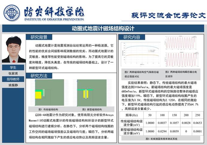 5月23日,本届大会程序委员会以视频方式召开全体会议,会议表决确定了52个分会场答辩专家组推荐的优秀毕业设计(论文)和PPT。张家琪同学的毕业设计论文《动圈式地震计磁场结构设计》和何昊阳同学的毕业设计论文《基于拓扑优化的差容式地震计机械摆结构优化设计》获得与会专家的一致好评,入选优秀毕业设计论文,体现了新葡的京官网测控专业“立足行业、强化实践、协同创新”的育人理念。