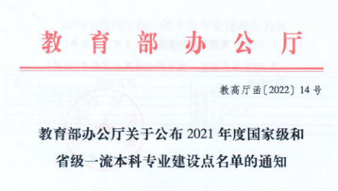 近日,教育部办公厅发布《关于公布2021年度国家级和省级一流本科专业建设点名单的通知》(教高厅函〔2022〕14号),我院测控技术与仪器专业再传捷报,入选国家级一流本科专业建设点(全校共入选5个专业)。