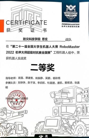 在受到疫情影响的2022赛季,备赛阶段中遇到各种困难,电子科学与控制工程学院及思玄机器人战队指导老师给予战队成员们鼓励与支持,陪伴战队共渡难关,致力于培养出优秀的青年工程师及创新型人才。(撰稿人:高强)