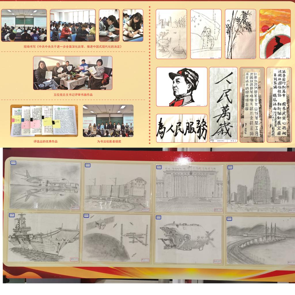 王翼涵、刘培涛、杨烯未、张嘉依等四位学生代表朗诵了《梦想照耀中国》,刘思彤、张鑫等50名同学集体朗诵了《中共中央关于进一步全面深化改革、推进中国式现代化的决定》中关于教育综合改革篇章。电子科学与控制工程学院党总支书记贾甚杰介绍了书画展的组织开展情况。
