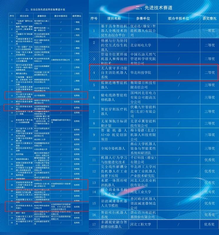 6月26日,第二届雄安未来之城场景汇“雄安安全应急创新技术应用大赛”决赛在雄安未来之城场景汇科创园正式启动。在新葡的京官网350vip8888新葡的京集团的精心组织安排下,推荐河北省安全生产与应急处置特种机器人重点实验室科研成果参赛。经过多轮角逐,“应大智能”团队“无人值守多功能自主消防机器人系统”最终以第12名的成绩获得优秀奖。在同期举办的“雄安国际机器人大赛”中,该成果以第4名的成绩获得了总决赛二等奖。