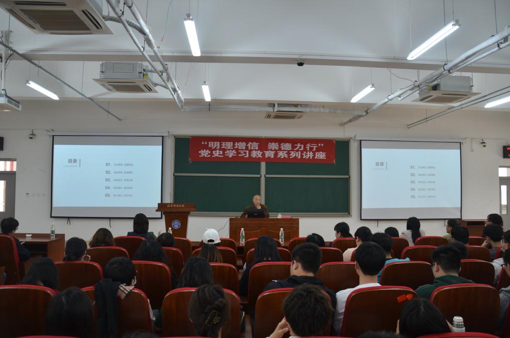 为深入开展党史学习教育,推进学史明理、学史增信、学史崇德、学史力行,2021年5月6日,值新葡的京官网校庆日来临之际,电子科学与控制工程学院党总支联合生态环境学院党总支等联合举办“筚路蓝缕建震校,同心戮力克时艰”校史学习报告会,邀请学校原副校长谭金意同志主讲,来自五个学院的三百多名师生到场聆听学习。