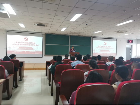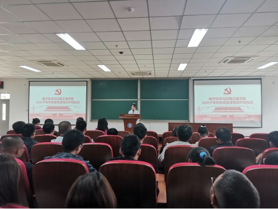2020年10月29日下午14:00,电子科学与控制工程学院在北校天仪楼408教室举行了2020年下半年初级党课培训开班仪式。参加人员有党总支书记贾甚杰、各专业学生党支部书记、各部门学生党员及全体初级党课培训班学员,仪式由实践部部长乔欣同志主持。
