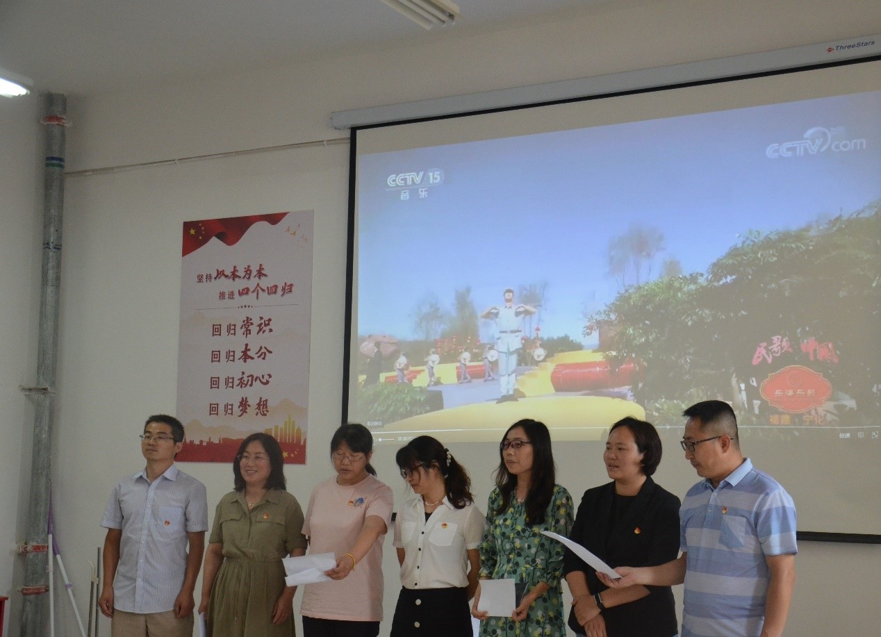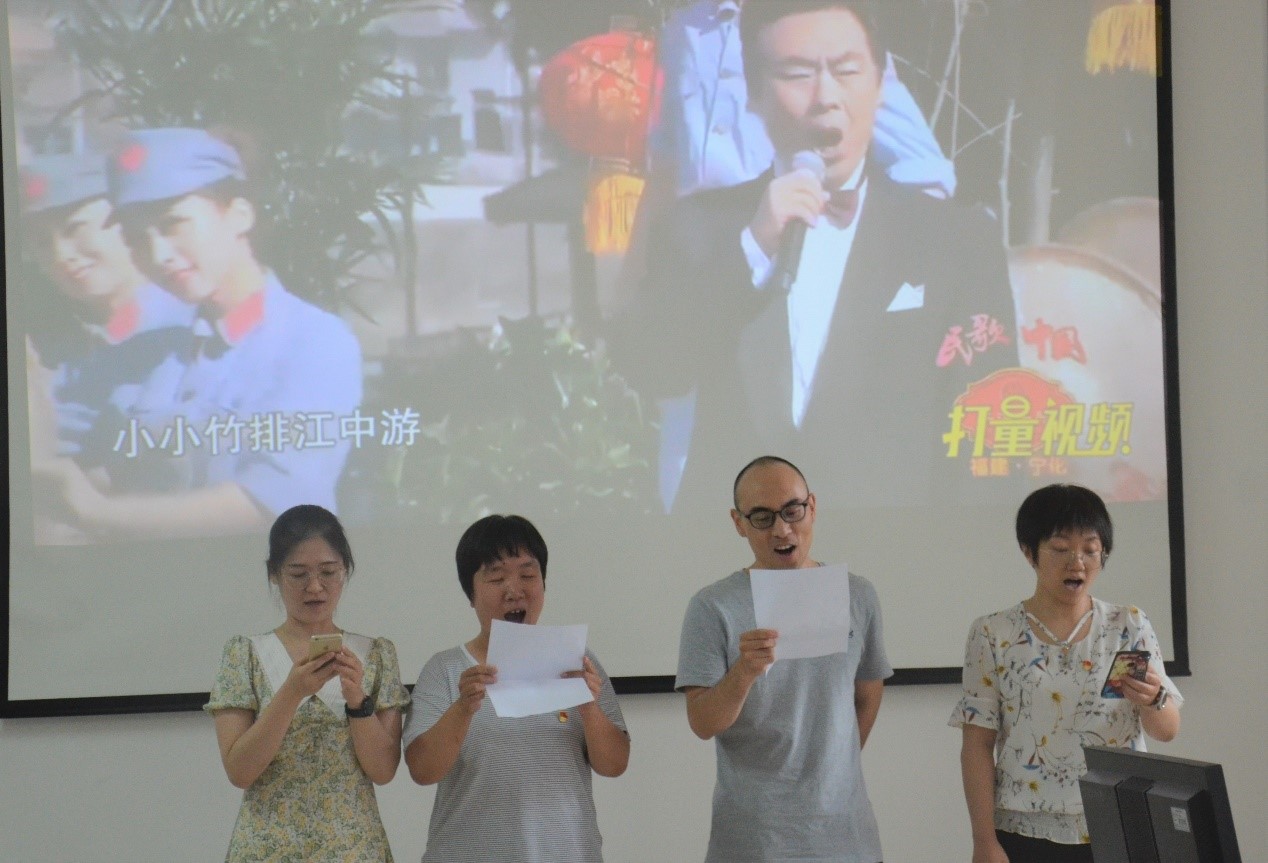 接下来四个教研室党支部通过朗诵、合唱等形式为党的百年华诞献上节日的祝福,祝福伟大的党青春永驻,伟大的祖国繁荣富强,伟大的人民幸福安康。