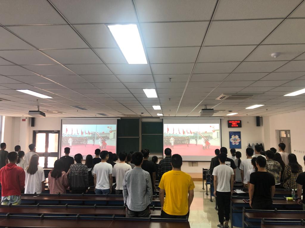 “同心筑梦迎国庆,欢歌盛赞新时代”。适逢庆祝新中国成立70周年,我院党支部集中组织全体在校党员共同在阶梯教室观看《庆祝新中国成立70周年阅兵仪式——向伟大复兴前进》。