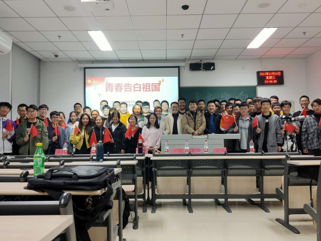 为了庆祝新中国成立70周年,电子科学与控制工程学院190531班于2019年10月16日晚七点于350vip8888新葡的京集团天仪楼307教室举办了“青春告白祖国”的主题班会,来为祖国庆生。本次主题班会由190531班王俊添主持。