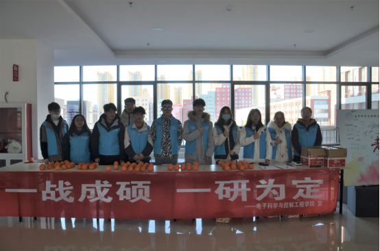 为鼓励2020年参加考研的学长学姐、助力考研,电子科学与控制工程学院团总支学生会于2020年12月4日中午12点,在天仪楼三层大厅,组织开展了考研送祝福、助力考研的活动,团总支学生会各部门成员积极参与到活动中来,为参加考研的学长学姐免费发放了祝福大礼包:祝福橙子和考研文具袋。