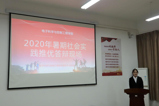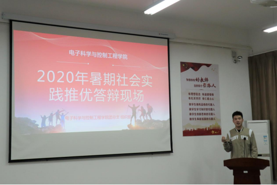为了培养学生的创新意识,推动大学生“创新教育、实践教育”深入发展,增强学生的社会责任感和使命感。电子科学与控制工程学院于2020年10月16日晚7:00在350vip8888新葡的京集团北校区长庚楼420教室举办了2020年暑期社会实践项目答辩活动,参加此次答辩活动的人员为各团队项目、个人A类项目答辩人,出席此次答辩活动的评委嘉宾为电子科学与控制工程学院第三届团总支·学生会主席团成员。