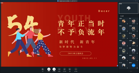5月10日,学院团总支组织学生干部观看庆祝中国共产主义青年团成立100周年大会的线上直播。青春孕育无限希望,青年创造美好明天。正如习近平总书记在讲话中提到的:“实现中国梦是一场历史接力赛,当代青年要在实现民族复兴的赛道上奋勇争先。时代总是把历史责任赋予青年。新时代的中国青年,生逢其时、重任在肩,施展才干的舞台无比广阔,实现梦想的前景无比光明。” 我们要以社会主义建设者和接班人的使命担当,在全面建设社会主义现代化国家新征程上奋勇争先,用青春和汗水为中华民族伟大复兴贡献我们的青春力量。