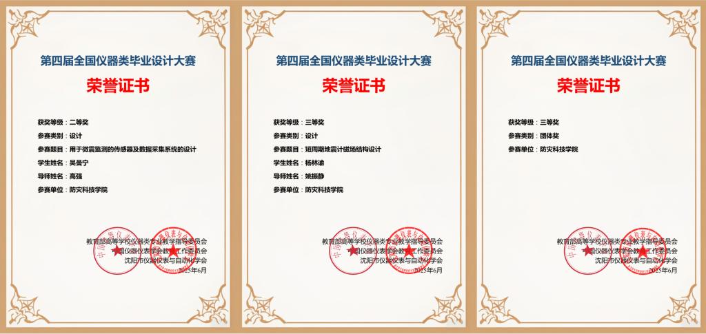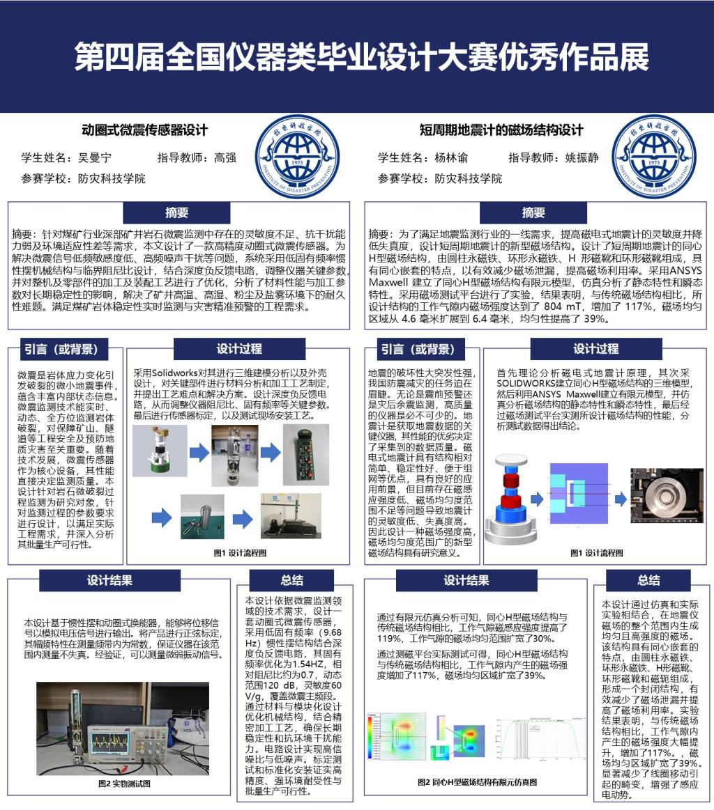 第四届全国仪器类毕业设计大赛近日在重庆大学成功举办。新葡的京官网测控技术与仪器专业选派7名学生参赛,取得优异成绩。其中,高强老师指导的吴曼宁同学《动圈式微震传感器设计》获国家级二等奖,姚振静老师指导的杨林谕同学《磁电式地震计的磁场结构设计》获国家级三等奖,新葡的京官网测控技术与仪器专业团队荣获"全国三等奖"团体奖项。